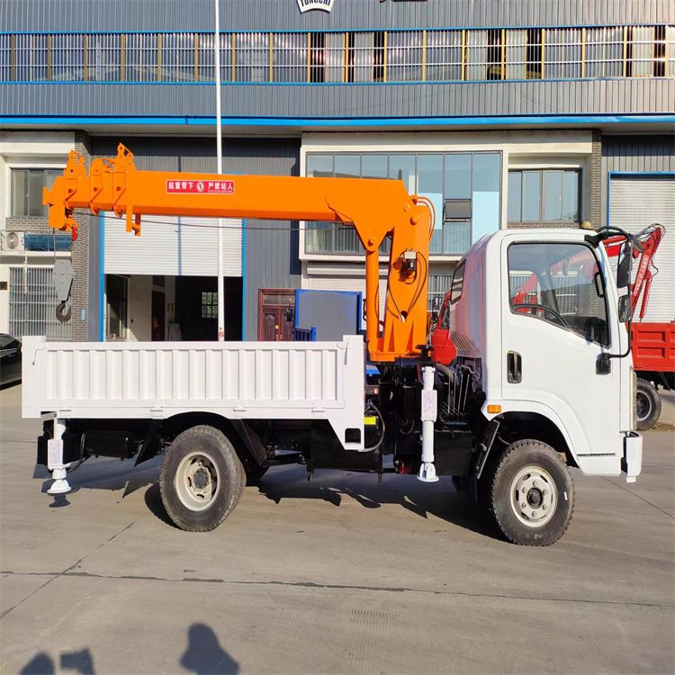 博野县重汽豪曼小型四吨直臂蓝牌随车吊厂家 起重机价格